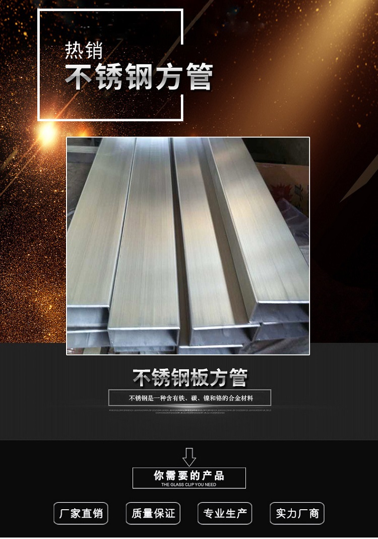 不銹鋼方管是一種中空的長條鋼材,因為截面是正方形所以叫做方管。大量用作輸送流體的管道,如石油、天燃氣、水、煤氣、蒸氣等,另外,在搞彎、抗扭強度相同時,重量較輕,所以也廣泛用于制造機械零件和工程結(jié)構(gòu)。